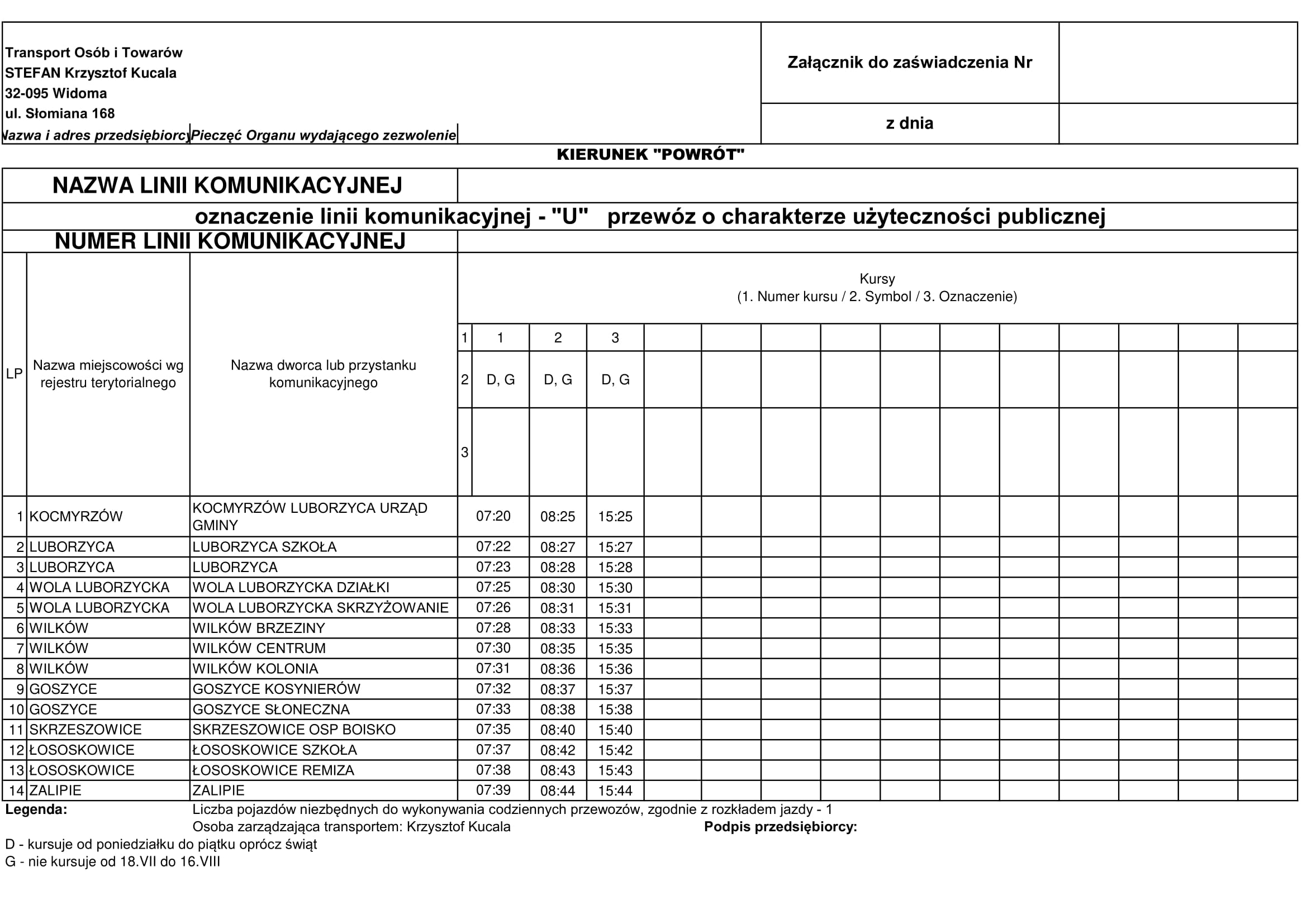 W zakresie transportu zbiorowego mieszkańców Gminy Kocmyrzów - Luborzyca obsługują: