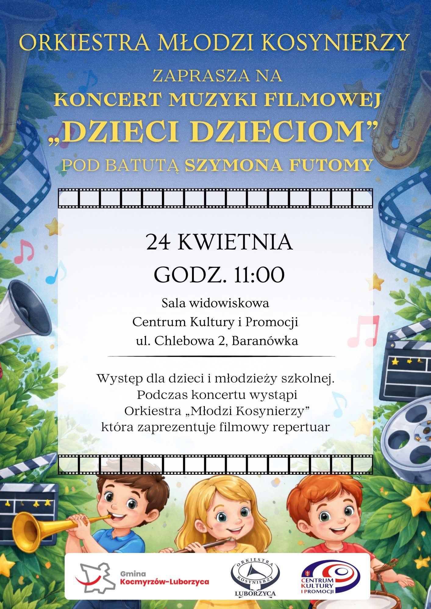 Najpiękniejsze utwory z filmów zabrzmią w wykonaniu Orkiestry „Młodzi Kosynierzy” pod batutą Szymona Futomy.