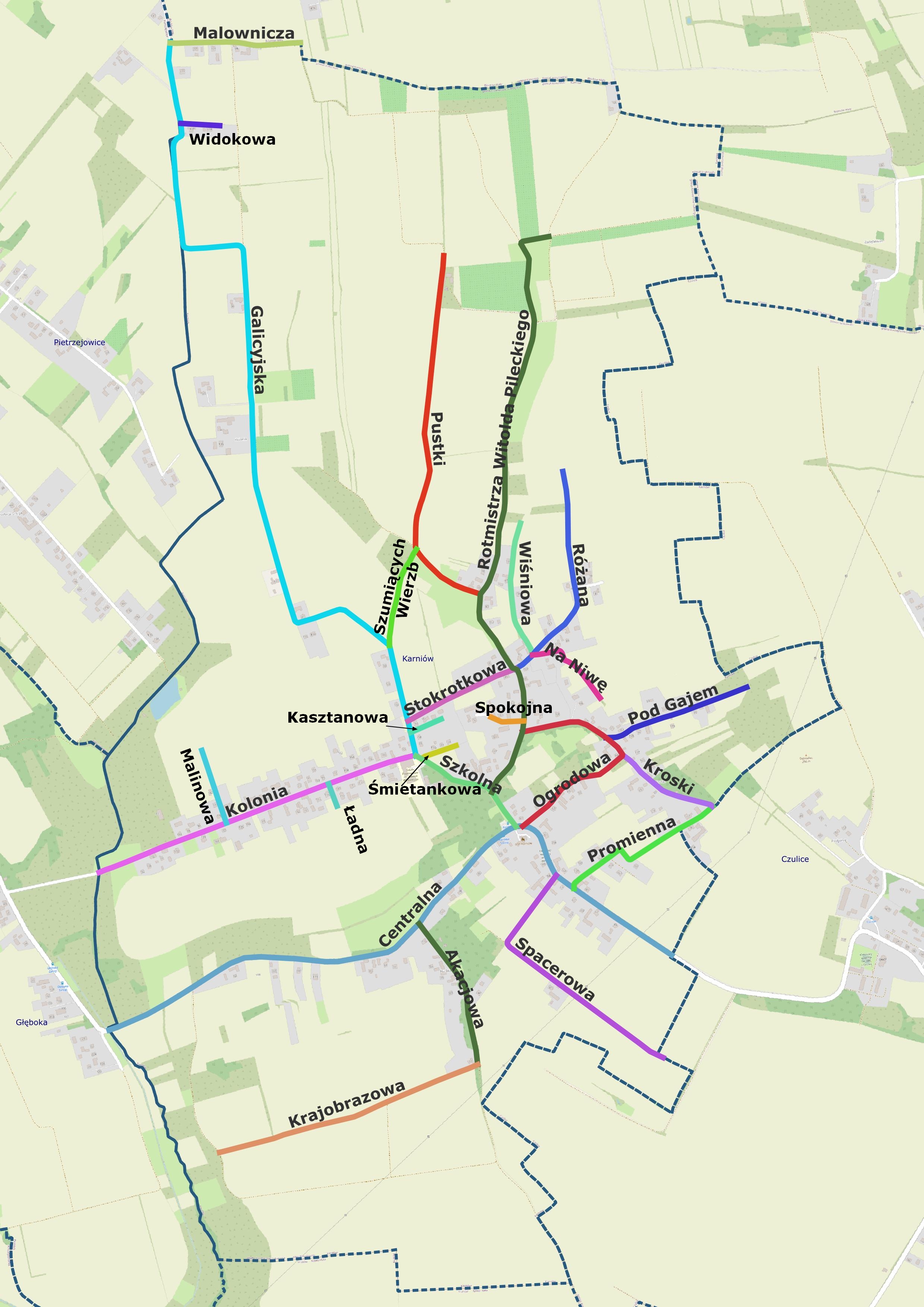 Wobec powyższego Urząd Gminy Kocmyrzów – Luborzyca zamieszcza projekt ulic w miejscowości Karniów do konsultacji przez Mieszkańców na okres 5 dni.