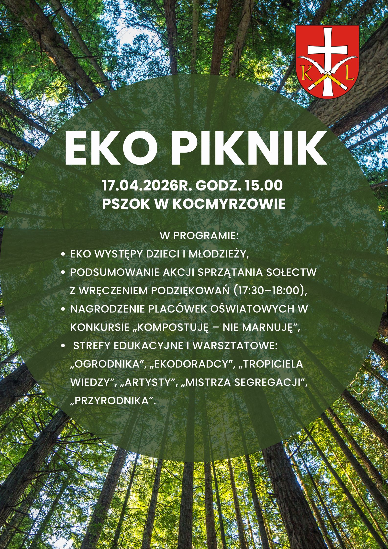 Serdecznie zapraszamy mieszkańców na Eko Piknik, który odbędzie się 17 kwietnia od godziny 15:00 na terenie PSZOK w Kocmyrzowie (ul. Graniczna 3).
